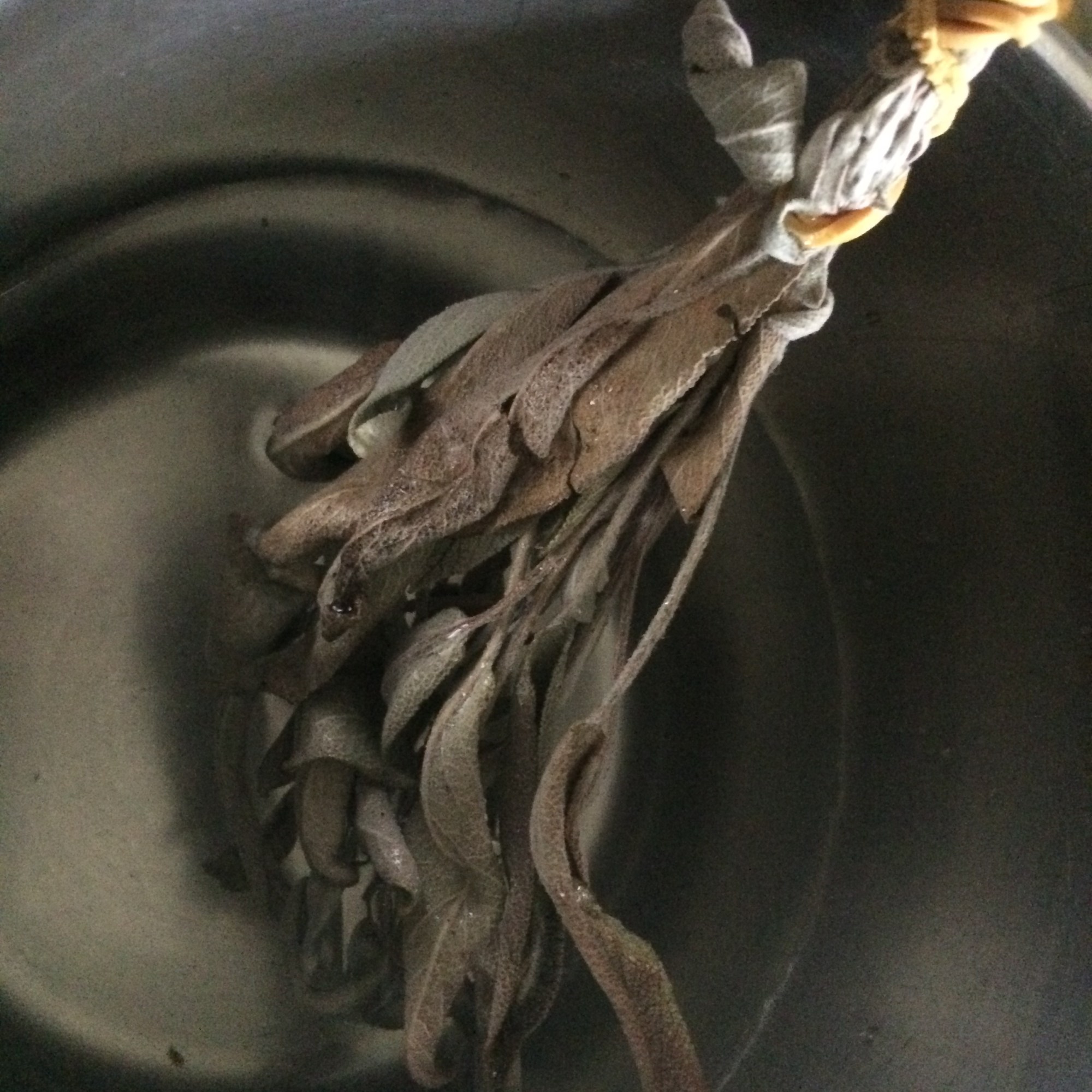 Rozemarijn en Laurier zijn deze keer ook gebruikt naast de Salie in een heel sterk aftreksel. Dat zijn tezamen de Tuinkruiden.