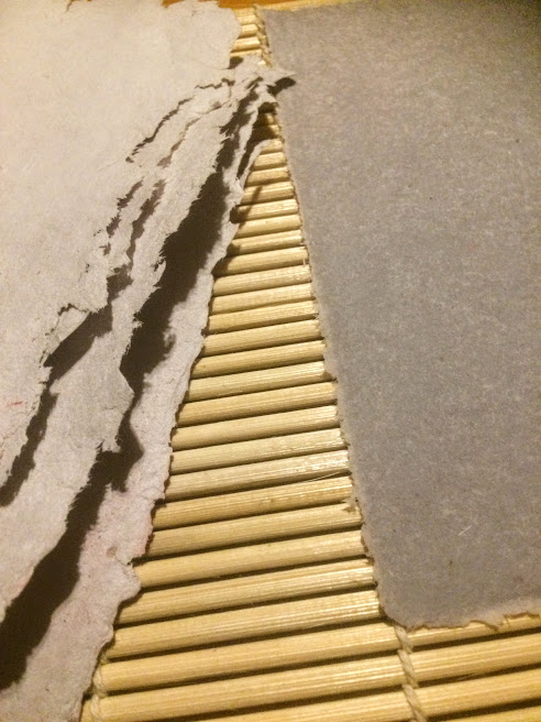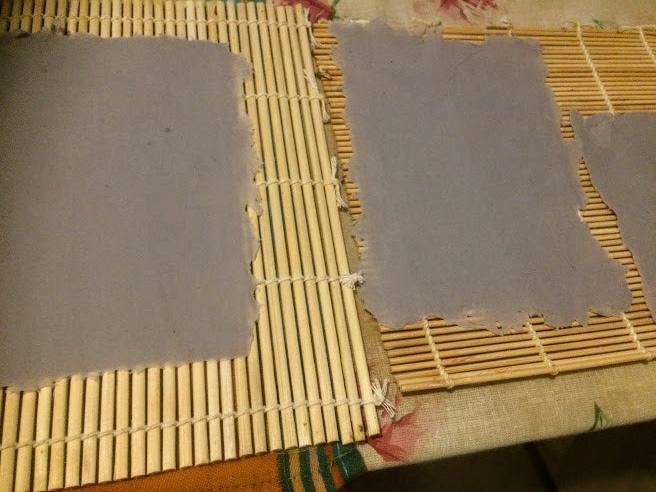Je kan al nat strijken, maar leg wel de natte velletjes tussen diverse theedoeken. Totdat ze geperst zijn, zijn de vellen nog kwetsbaar en gaan ze snel kapot. Je kan doorgaan en ze droogstrijken.