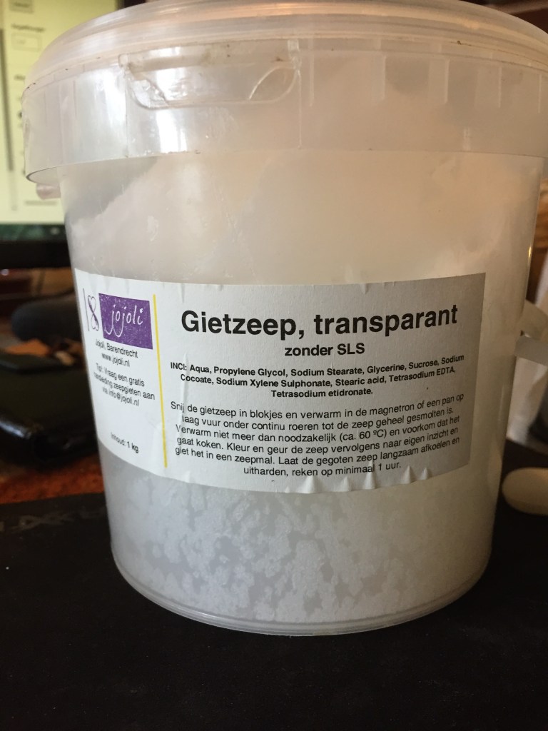 In het volgende recept maken we de zeep iets dikker en nemen we de verhouding 1:10, 1 deel zeep op 10 delen water. We gaan ook een beetje ‘cheaten‘, want we nemen geen ambachtelijk gemaakte oliezeep, maar we nemen gietzeep om vloeibaar te maken. De bedoeling is om oude restjes zeep op te maken en te hergebruiken.