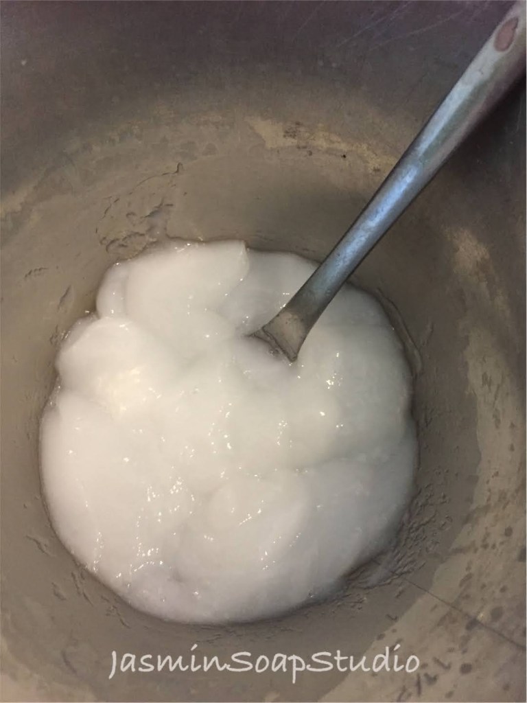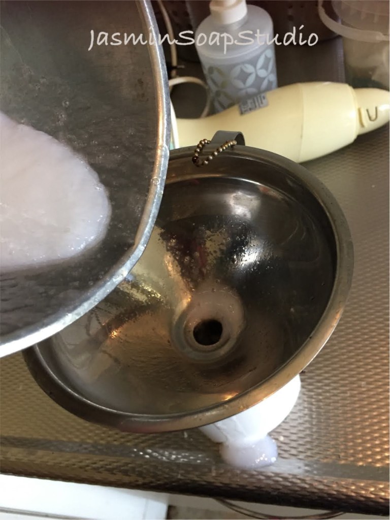 Zou er verschil zitten in zeep die al een keer bewerkt is geweest en ruwe zeep? Om het verschil te ontdekken, maak ik tegelijkertijd een 2e batch van zeep zo uit het emmertje.