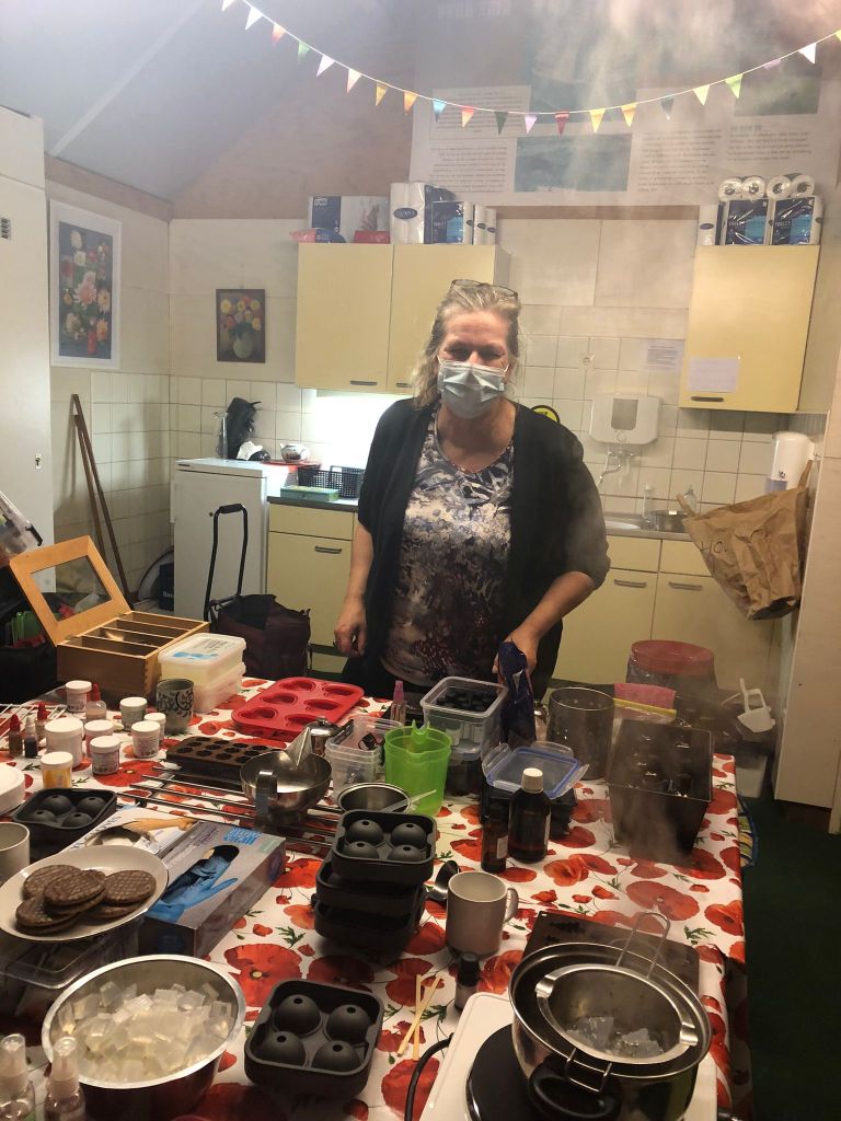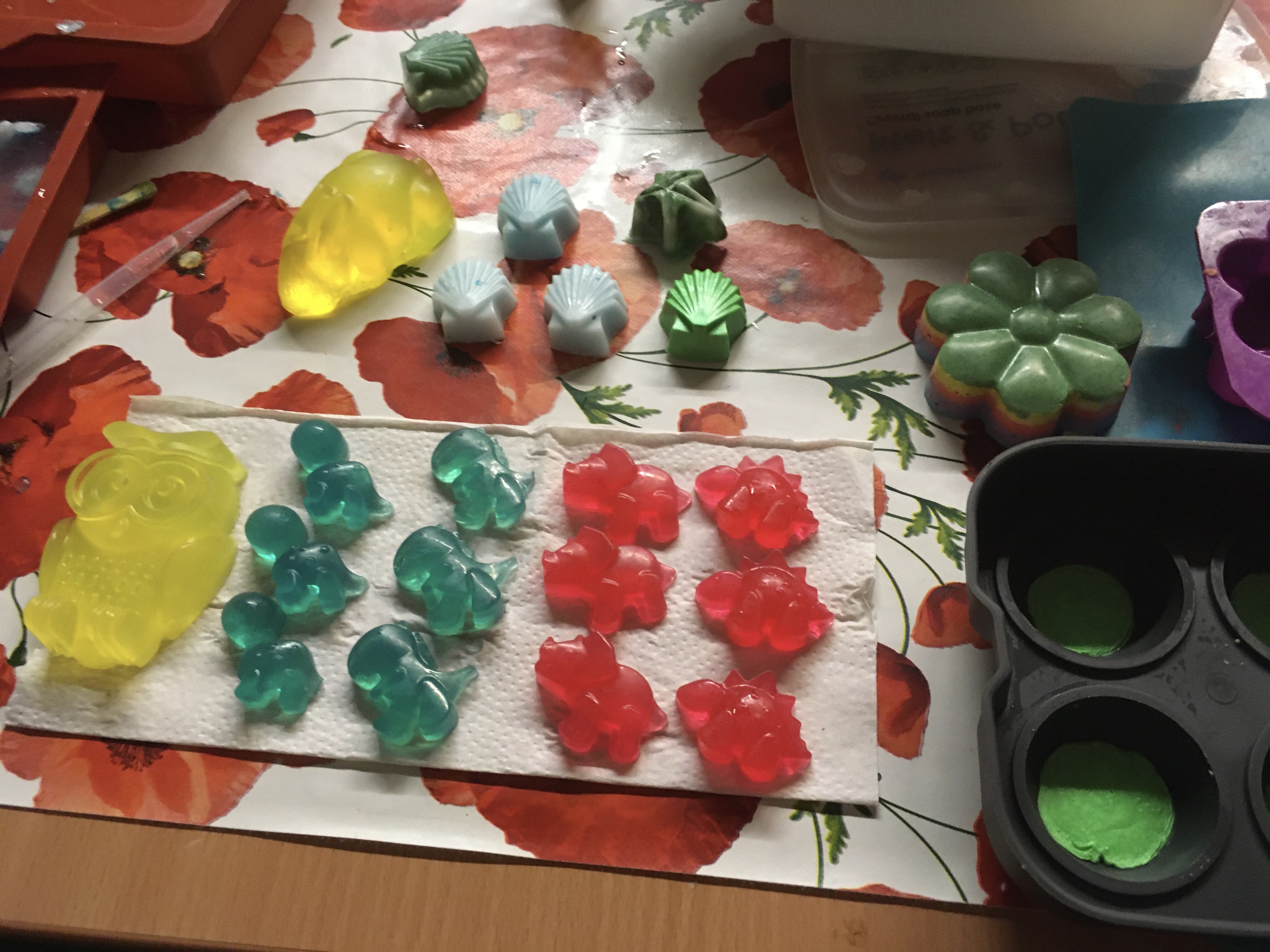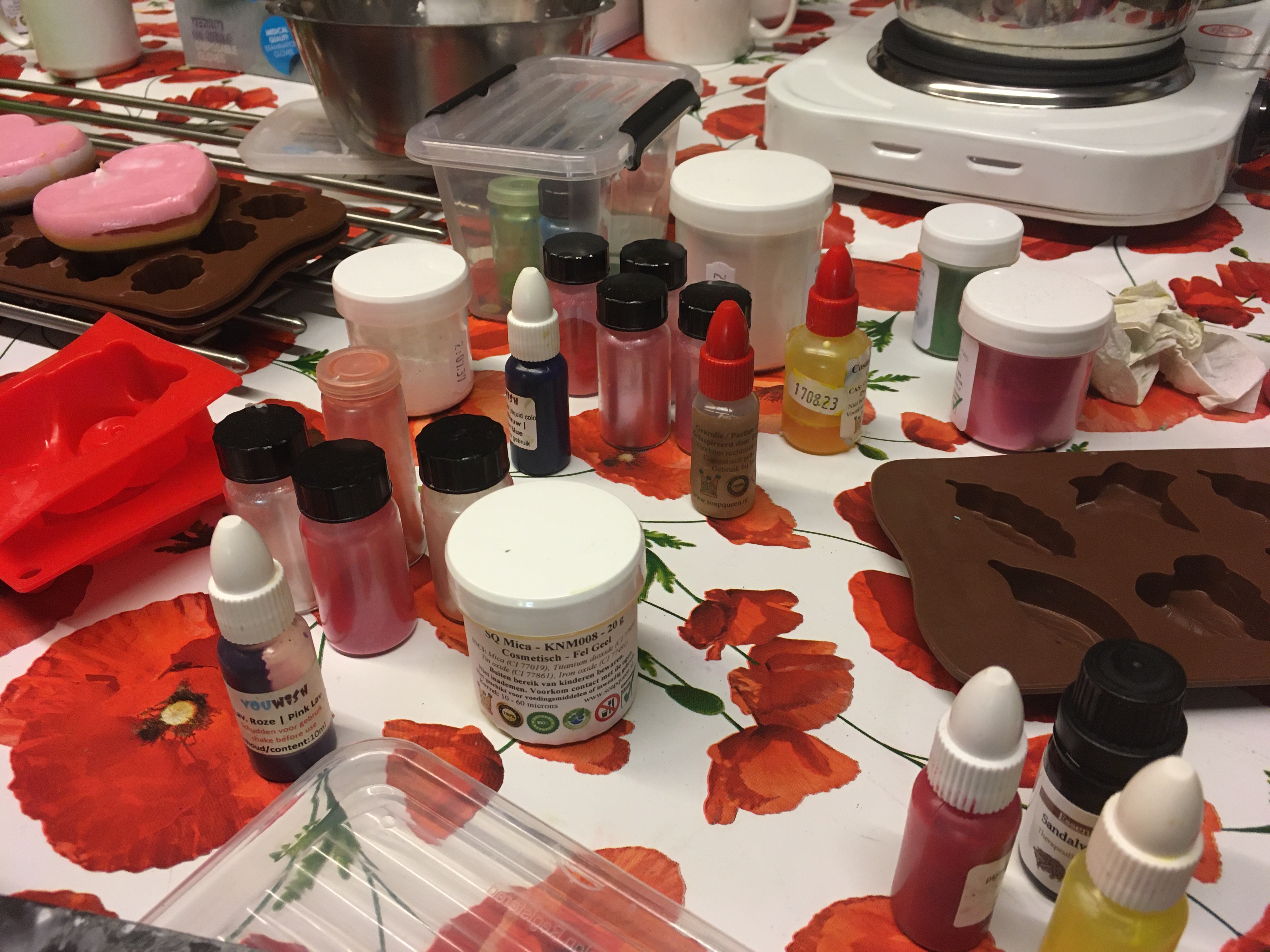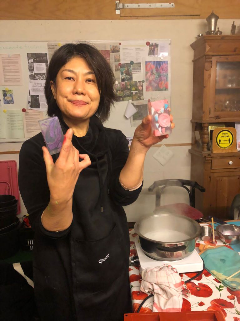 Dit was een totaal andere soort workshop dan het ambachtelijke zeep maken. Geen loog, geen beschermende brillen, geen stress, alleen maar concentratie en creativiteit. Toen we om elf uur ’s avonds een beetje wakker schrokken uit de creatieve trance, bleek dat we al anderhalve uur te lang waren doorgegaan, nog steeds vol inspiratie: te weinig tijd voor te veel ideeën. Het was echt heel leuk, omdat alle deelnemers procesgericht waren en niet zozeer gefocust op een eindresultaat. Eigenlijk waren we na 3,5 uur nog steeds niet klaar.