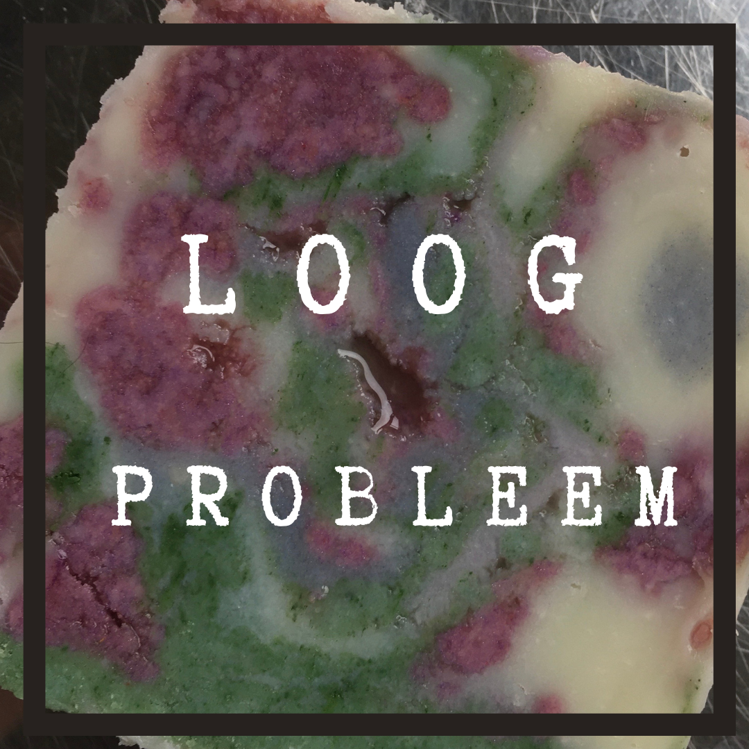 Na het doorsnijden van de test-zeep werd het probleem direct zichtbaar: Lye Pockets. Volgens mij ken ik geen fatsoenlijke Nederlandse vertaling hiervoor. Loogzakjes?