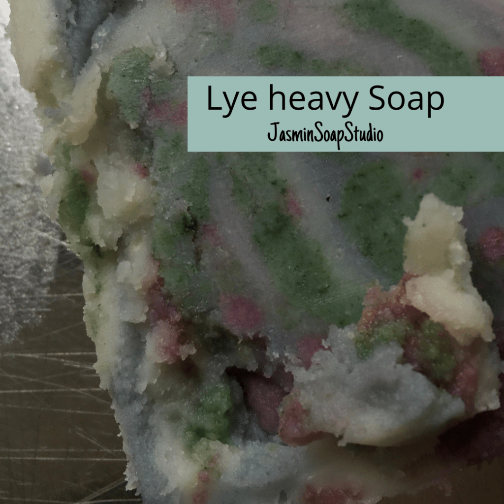 Het mysterie was snel opgelost. Ik herinnerde me dat ik de hoeveelheid loog in de buitenlucht had laten afkoelen. Toen deze handlauw was geworden (bij wijze van spreke natuurlijk), had ik hem in flessen gegoten. Normaal gesproken laat je de loog niet erg lang afkoelen en gebruik je hem vrij snel na het maken. Misschien heeft de loog wel een uurtje gestaan, onafgedekt. Dus er was water verdampt waar ik geen rekening mee gehouden had.